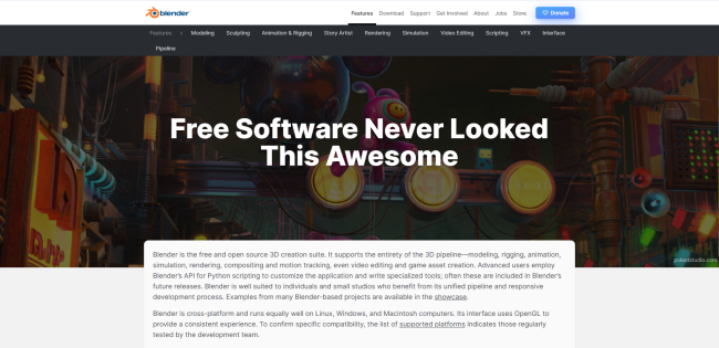 - All-in-one pipeline: Modeling, sculpting, animation, rendering, and compositing in a single application